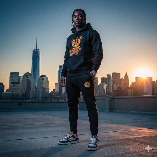 Adult " Hoodie SZN " Black Premium Fleece Jumpsuit (Top & Bottom )